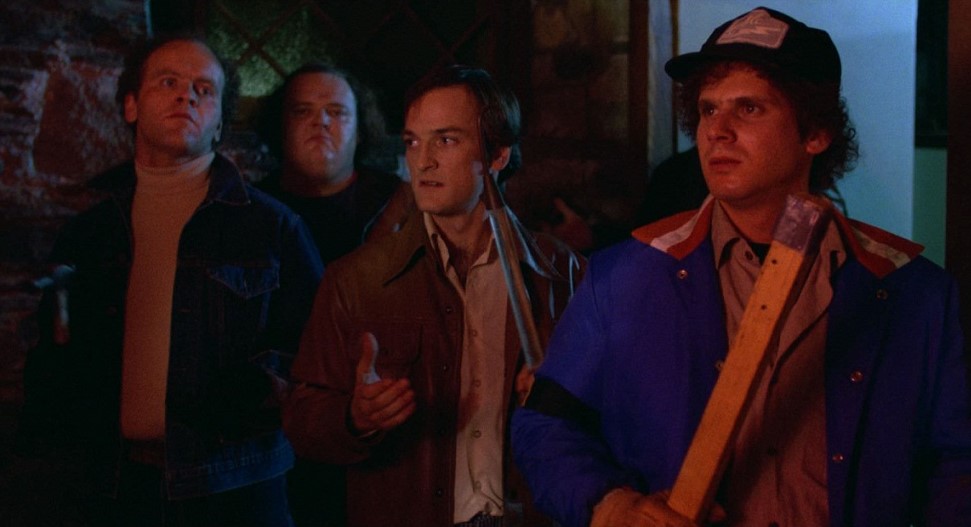 When the Halifax, Nova Scotia police force goes on strike, a gang of Fascists (including some vigilante cops) who call themselves the “New Order” take advantage of this lawless state and invade a gay bar where they harass the patrons in what I assume is the first stage of their King Dick plan. When the bartender gets accidentally impaled by a broken wine bottle and killed, the leader of the fascist gang starts executing all the witnesses. One of the patrons manages to escape and makes his way to a neighboring apartment building where the tenants help protect him from the gang.